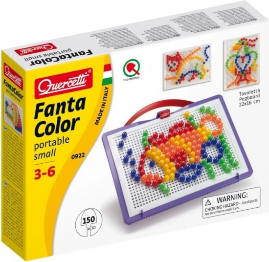Découvrez un jeu créatif malin et compact avec la mosaïque QUERCETTI FantaColor. Les enfants insèrent des chevilles colorées dans les trous de la plaque et créent leurs propres images, motifs et dessins simples. Le jouet favorise le développement de la motricité fine, la coordination œil–main et la concentration.