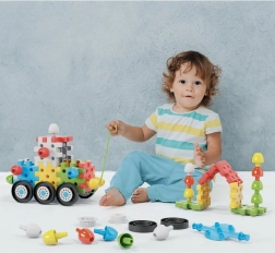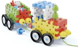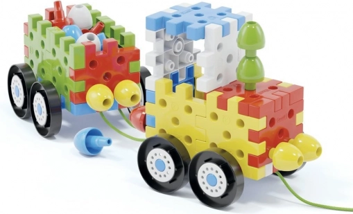 Construisez des petites voitures, des maisonnettes et des arbres à partir de pièces et de chevilles ! Ce jeu de construction innovant contient des pièces plates 3D interconnectables et de grandes chevilles de différentes couleurs, grâce auxquelles même les plus petits peuvent assembler diverses petites voitures, maisons, tours, arbres et bien d’autres choses. Parmi les 62 éléments au total se trouvent 8 roues pour les châssis des petites voitures et 3 cordelettes permettant de tirer les voitures. Outre différentes petites voitures, le jeu permet également de créer des structures planes et tridimensionnelles variées, exerçant et développant ainsi chez les enfants de 2 à 6 ans la motricité fine, la coordination œil-main et l’orientation spatiale, tout en soutenant leur développement cognitif. Contenu de la boîte : 20 pièces plates 3D interconnectables, 16 chevilles interconnectables, 8 roues, 3 cordelettes pour tirer les petites voitures. Principales caractéristiques : développe la motricité fine, la créativité, l’imagination et la logique combinatoire ; l’emballage contient 52 pièces ; pour les enfants à partir de 2 ans.
