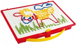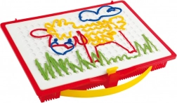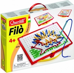Douvez la magie du jeu créatif avec l'ensemble de broderie Quercetti Filò, qui stimule l'imagination et la motricité fine des enfants. Grâce aux stylos spéciaux, les enfants peuvent créer différents dessins en insérant des cordons de couleur dans les trous de la planche de jeu, leur apportant joie et amusement.
