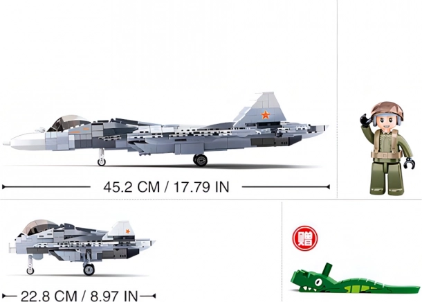 Profitez d’une construction détaillée du chasseur SU-57 avec des formes réalistes et des possibilités de reconstructions grâce au concept 2 en 1. La boîte Sluban Model Bricks garantit une grande qualité de fabrication, des notices claires et une excellente compatibilité avec d’autres sets populaires, afin d’étendre facilement votre collection.