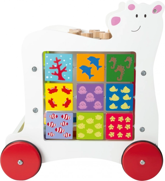 Grâce aux roues caoutchoutées, le mouvement est silencieux et doux pour tous les types de sols. Le trotteur offre en outre un espace de rangement pour les cubes et petites affaires, afin que le coin de jeu reste toujours bien rangé.