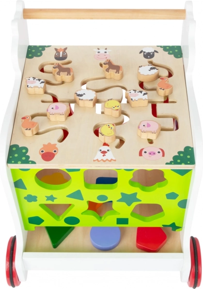 Découvrez le monde pas à pas. Ce trotteur robuste, en combinaison de contreplaqué et de bois massif, aide les enfants à s’entraîner en toute sécurité à l’équilibre et à la coordination, tandis que les activités intégrées — boîte à formes avec 6 pièces, labyrinthe et cubes rotatifs — renforcent la perception visuelle et la logique. L’ardoise pour dessiner à la craie ajoute une dimension créative à l’apprentissage et au jeu.