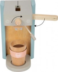 Les enfants profitent d’une préparation authentique du café : ils insèrent une capsule, abaissent le levier et décorent la boisson avec une mousse magnétique. Idéal pour jouer au café.