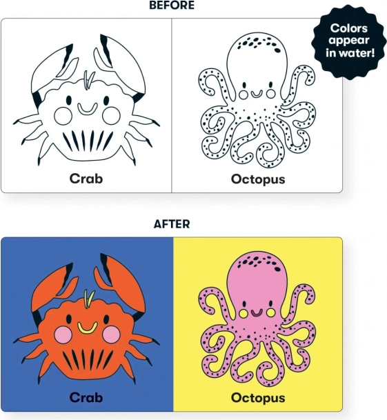 Découvrez la magie de jouets de bain uniques. Ce petit livre illustré apparemment discret s’anime de couleurs vives une fois mouillé. Il capte facilement l’attention des enfants et les divertit pendant le bain, tout en aidant à développer leurs compétences cognitives. Les proportions du jouet sont spécialement adaptées aux petites mains encore maladroites des enfants. Principales caractéristiques : 6 pages illustrées, couleurs activées par immersion dans l’eau, conception graphique de Marijke Buurlage