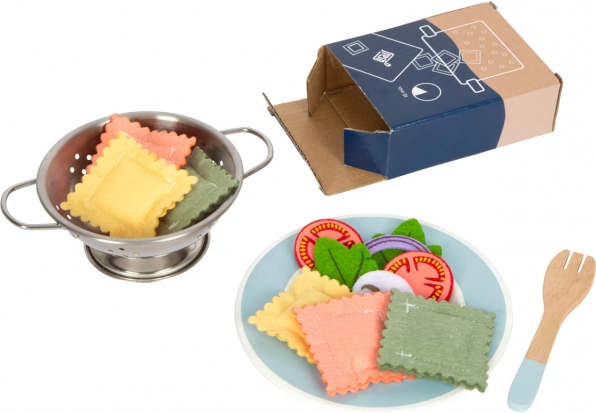 Devenez un maître dans la cuisson des pâtes avec notre ensemble complet de vaisselle pour enfants, qui comprend des répliques attrayantes de pâtes en feutrine et d'autres ingrédients. La conception réaliste des ustensiles en métal et les accessoires créatifs stimuleront le développement de l'imagination des enfants et leurs compétences sociales.