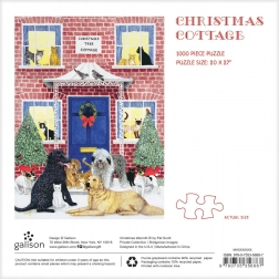 Le motif « Christmas Tree Cottage » avec des chiens et des chats espiègles apporte à la maison une atmosphère festive et la joie de l’assemblage.