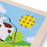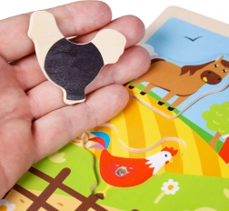 Puzzle encastrable sonore en bois Ferme est un excellent moyen d’apprendre aux enfants, en s’amusant, à reconnaître les formes et les animaux. Lorsque la bonne pièce est placée, on entend le son caractéristique de l’animal, ce qui stimule leurs capacités cognitives.