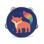 Le tambourin est décoré d’une adorable illustration de renard à queue arc-en-ciel sur fond bleu, offrant aux enfants une façon joyeuse de faire de la musique.