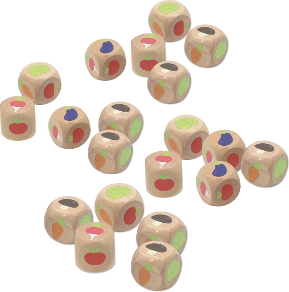 Jeu amusant pour toute la famille, qui vous plonge dans le monde de la stratégie et de la logique. Vous rivalisez dans le défi de retrouver les mêmes types de légumes sur les dés et essayez de priver vos adversaires de leurs dés.