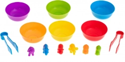 Six bols de différentes couleurs et 36 figurines permettent aux enfants de trier, additionner et comparer – idéal pour les premières activités mathématiques.