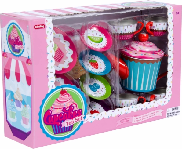 L'ensemble entier est conçu avec des couleurs vives et des motifs de muffins décorés, ce qui en fait un choix parfait pour les goûters imaginaires.