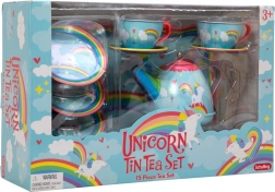 Adorable service à thé sur le thème de la licorne qui ravira les petites hôtesses et les petits hôtes. Il comprend 15 pièces en métal résistant – tasses, sous-tasses, assiettes, théière avec couvercle et un plateau de service 24 × 16 cm. Idéal pour les thés imaginaires et pour développer la créativité ainsi que les compétences sociales. Convient aux enfants à partir de 3 ans.