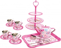 C’est l’heure d’un thé magique ! Ce riche service à thé pour enfants offre tout le nécessaire pour un moment de table ludique avec les parents, les poupées et les peluches. L’ensemble est finement décoré, fabriqué en métal léger et résistant et en plastique sûr, et développe l’imagination, la coopération et les compétences de communication. Il comprend un service pour 4 personnes et au total 35 pièces, dont un présentoir à étages pour les sucreries.