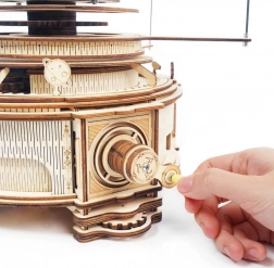 Les pièces découpées au laser dans un contreplaqué de tilleul de 2 mm s’emboîtent parfaitement. Le mécanisme est stable, décoratif et conçu pour durer.