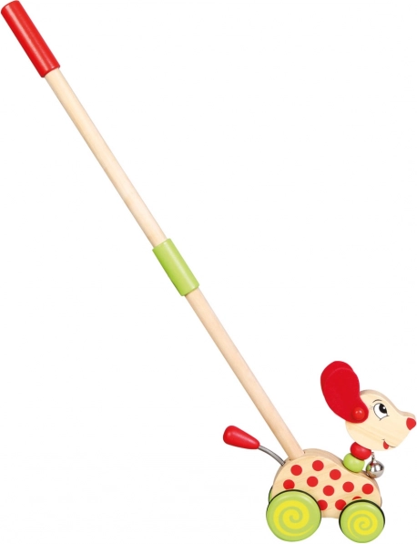 Le chien à pousser en bois sur tige de la marque Bino est un jouet de motricité apprécié qui motive les enfants à marcher et à bouger activement. En le poussant devant soi, le chien muni d’un grelot tinte doucement, ce qui amuse les enfants et les incite à faire d’autres pas. Les roues caoutchoutées assurent une conduite fluide et silencieuse sur différentes surfaces.