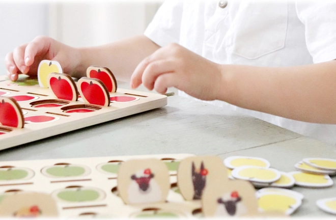 Des illustrations colorées d’animaux et de pommes sur des plateaux solides invitent au jeu et résistent à une utilisation intensive par les enfants. Idéal pour des parties répétées à la maison comme en voyage.