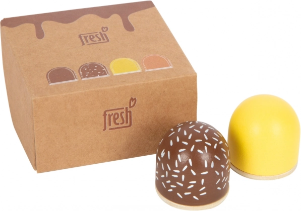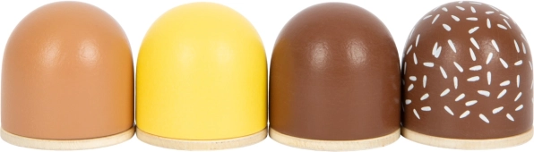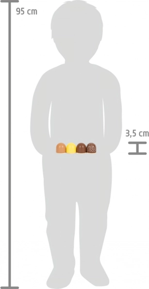Pour les petits gourmands ! Ces quatre pralines sucrées en bois avec une guimauve à l'intérieur apportent du plaisir dans les boutiques et cuisines pour enfants.