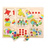 Vos petits curieux vont à coup sûr adorer ce petit puzzle intéressant et malin. Non seulement ils s’amuseront à trier les pièces aux bons endroits, mais ils pourront aussi insérer uniquement les images puis leur associer les bons chiffres. Chaque pièce du puzzle en bois est dimensionnée pour faciliter le soulèvement et la prise en main par de petites mains d’enfant. Les puzzles sont imprimés avec des images ou des couleurs qui favorisent l’apprentissage et ajoutent une valeur éducative. Une excellente façon de développer la dextérité, la reconnaissance des formes, la concentration et le comptage dès le plus jeune âge. Principales caractéristiques : fabriqué à partir de matériaux de haute qualité issus de sources responsables, conforme aux normes européennes de sécurité en vigueur.