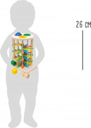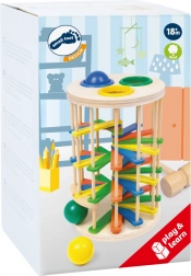 Jouet amusant pour les enfants, où les *compétences motrices sont développées* grâce au martelage des boules, qui descendent un escalier en bois coloré.