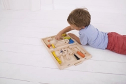 Superbe mallette en bois avec outils pour tous les jeunes bricoleurs qui souhaitent développer leurs compétences manuelles. Elle contient un marteau, une pince, une perceuse et des clés pour écrous, le tout fabriqué avec des matériaux de qualité.