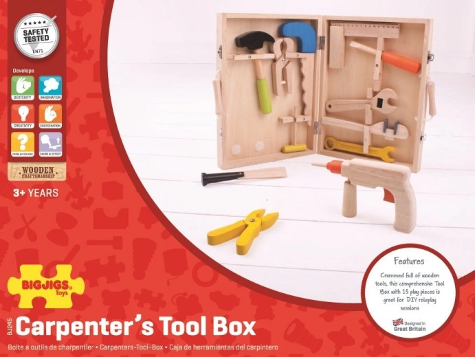 La mallette en bois avec outils Bigjigs Toys est idéale pour les jeunes bricoleurs, développe les compétences et respecte les normes de sécurité.