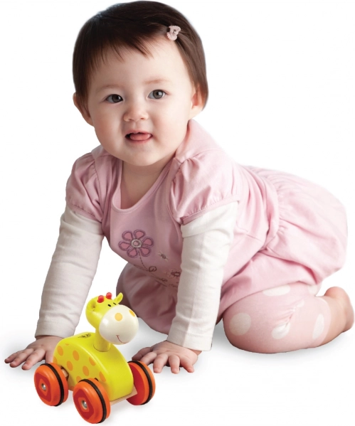 Cette joyeuse girafe à roulettes est le premier petit véhicule idéal pour les mains des enfants. En inclinant le jouet, l’enfant change facilement la direction de marche, ce qui développe naturellement la coordination œil-main et stimule le jeu actif. Les anneaux en caoutchouc sur les roues assurent une progression fluide et silencieuse sur différentes surfaces.