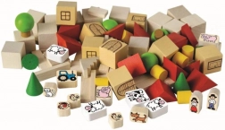 Les pièces sont universelles et résistantes, ce qui en fait un excellent complément à d’autres ensembles, par exemple à la boîte de construction ville du même fabricant. Fabriquée en bois massif en République tchèque, cette boîte est de haute qualité et sûre pour les enfants dès 3 ans.