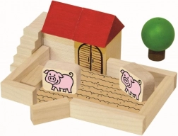 Cette construction en bois comprend des pièces de formes, couleurs et tailles diverses permettant aux enfants de créer leur propre décor de ferme. Les pièces imprimées d’icônes attrayantes représentent des motifs champêtres, notamment des figurines d’animaux, favorisant ainsi la créativité.