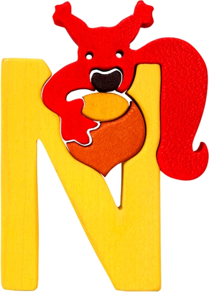 - Puzzle en bois à encastrer – lettre N avec motif écureuil