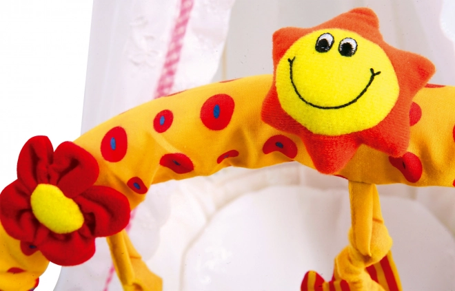 Le mobile peut être facilement fixé à la poussette ou au berceau, assurant confort et praticité.