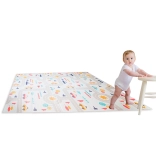 Fabriqué en mousse épaisse (0,8 cm), le tapis protège les enfants du froid et assure la sécurité lors des premiers pas et des tentatives de ramper.