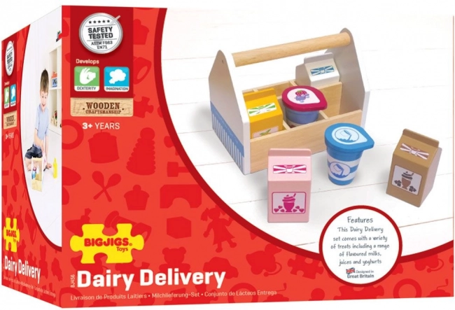 - Contenu du set : 4 cartons de boissons, yaourt, crème, caisse en bois avec poignée