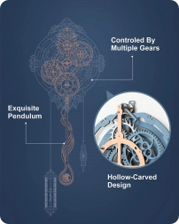 Appréciez le tic-tac relaxant et le mouvement fluide du pendule. Le design ouvert avec engrenages met en valeur la beauté mécanique de l’horloge et souligne un style vintage dans votre intérieur.