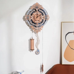 Découvrez la double satisfaction d’assembler et de décorer avec cette horloge murale mécanique 3D en bois. Vous construirez un cadran richement orné avec mécanisme apparent et profiterez d’un tic-tac apaisant ainsi que du mouvement du pendule. Grâce au mouvement à pile, l’horloge indique l’heure avec précision, tandis que le mécanisme de pendule fonctionnel crée une atmosphère unique. L’association du bois naturel avec des accents bleus et orange en fait un élément décoratif incontournable de votre intérieur.