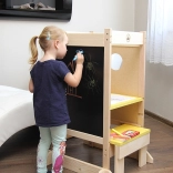La tour se transforme aisément en un ensemble pratique pour dessiner et apprendre. Une solution idéale pour les petits espaces où chaque centimètre compte.