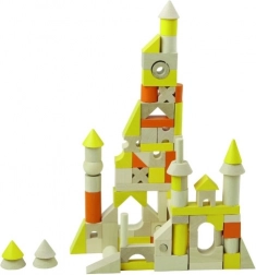 Jeu de construction revisité composé de pièces en bois de différentes formes et tailles dans des couleurs attrayantes jaune et orange. Contient 96 pièces permettant de construire des structures impressionnantes.