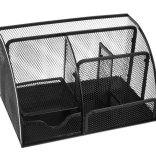 Gardez votre bureau ordonné grâce à un organisateur de bureau compact et robuste en maille métallique d’un élégant noir. Il offre 6 compartiments, un tiroir coulissant pratique et une organisation astucieuse pour stylos, surligneurs, notes adhésives, trombones et ciseaux – idéal pour le bureau, le coin travail à la maison et les études.