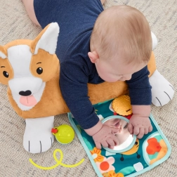 Ce coussin en forme de joli petit chien offre trois façons différentes de jouer et de se développer pour les enfants. Idéal pour les jeux sur le ventre, assis et avec imagination. Le coussin inclut un panneau bruissant et 3 jouets interactifs qui aident à développer les compétences motrices et stimulent les sens de la vue, de l'ouïe et du toucher.
