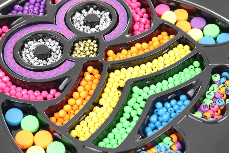 L’organisateur en forme de chouette sépare clairement les couleurs et types de perles pour une création simple et ordonnée. Les cordons élastiques assurent un enfilage facile et un port agréable des bijoux finis. Le kit développe la créativité, la patience et la motricité fine des enfants.