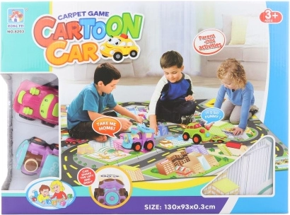 Ce tapis coloré représente un monde de transport incroyable, sur lequel les enfants peuvent se déplacer avec la petite voiture et le train. Les dimensions du tapis sont de 130 x 93 cm, offrant suffisamment d'espace pour le jeu et la découverte.