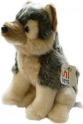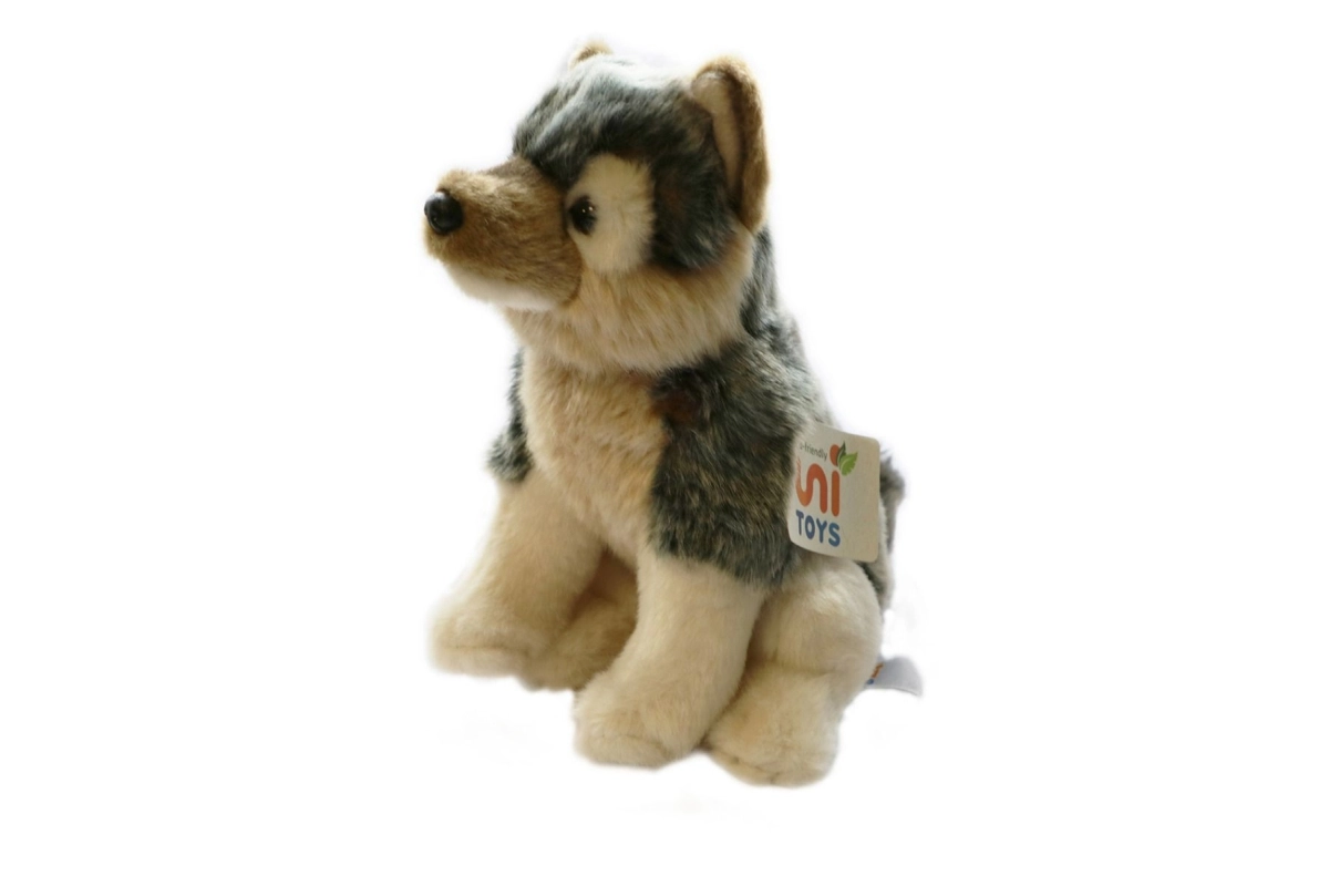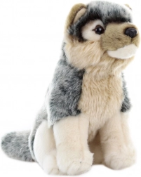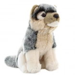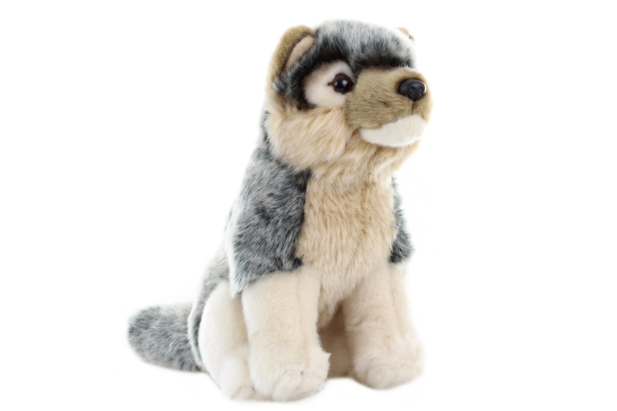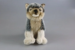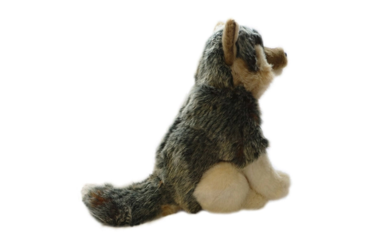 Loup en peluche assis d’environ 20 x 24 x 11 cm (sans la queue). Longueur de la queue : environ 9 cm. Âge 0+