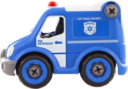Grâce au vissage facile, le modèle est idéal pour les petits mécaniciens. Plastique de qualité, pièces amovibles (p. ex. roues et pare-chocs) et look de police affirmé garantissent longévité et attrait visuel.