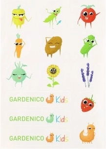 L'ensemble comprend des autocollants Gardenico Kids qui favorisent la créativité et aident les enfants à apprendre sur les plantes de manière ludique.
