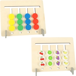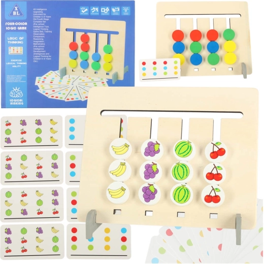 Découvrez un jeu amusant et éducatif pour enfants, qui allie apprentissage et plaisir. Une planche en bois réversible avec jetons coulissants et cartes-modèles développe la logique, la coordination et la reconnaissance des couleurs et des fruits. Sa fabrication en bois de qualité et ses motifs ingénieux motivent à jouer et à se concentrer.
