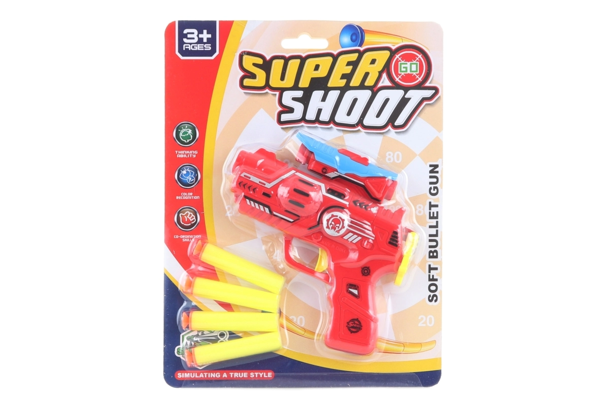 Pistolet pour enfants à projectiles en mousse pour jouer en toute sécurité à la maison comme en extérieur. Ses dimensions compactes, sa prise en main facile et sa construction légère en plastique assurent un usage confortable. Idéal pour les enfants dès 3 ans et les premières parties d’action avec des projectiles souples.