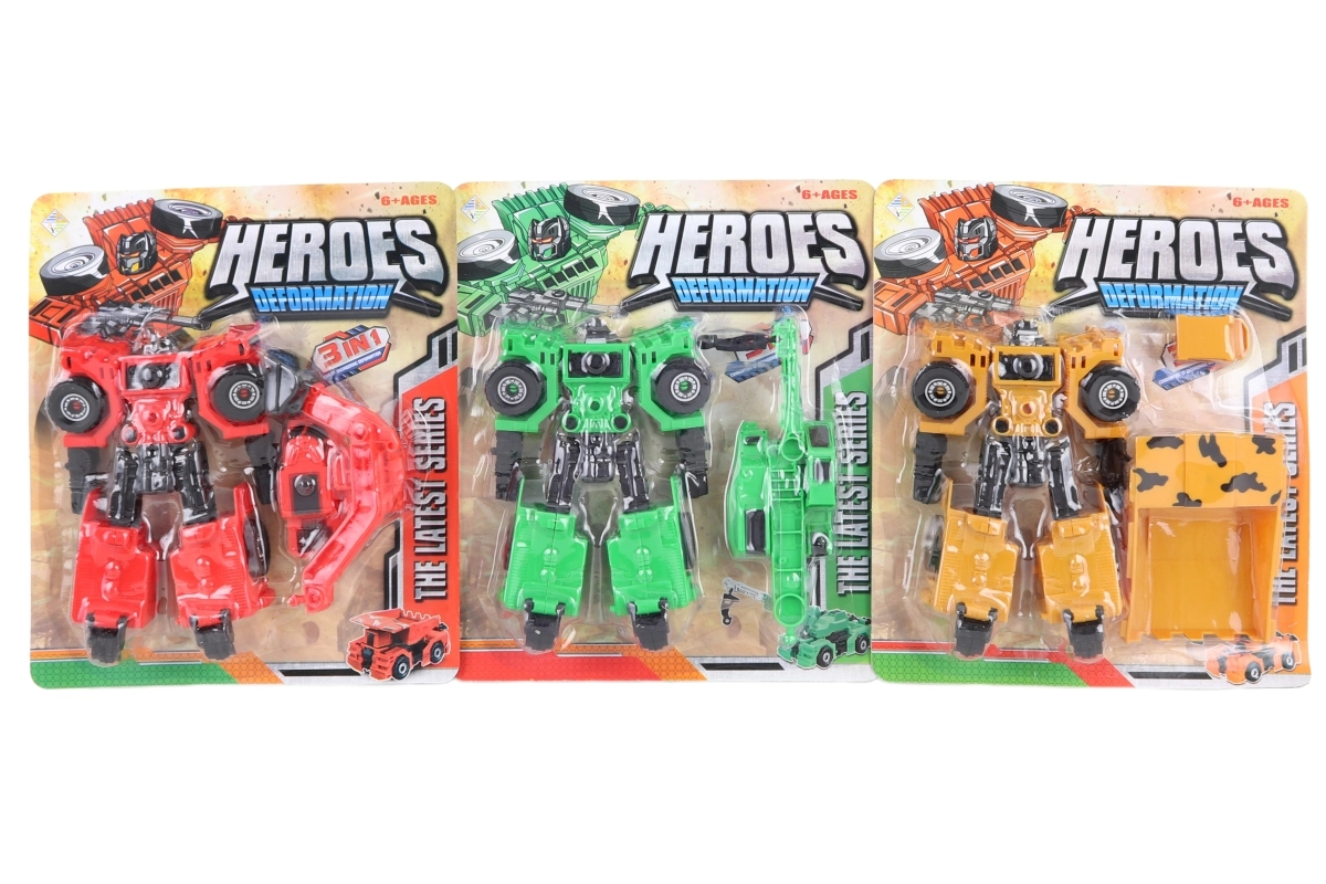 Kit de construction 2-en-1 amusant pour enfants dès 6 ans : assemblez à partir de pièces en plastique un robot pliable d’environ 16 × 11 cm, qui peut se transformer en véhicule de chantier. En achetant les 3 modèles, vous pouvez en plus assembler un grand robot – idéal pour développer la créativité, la motricité et la pensée logique.