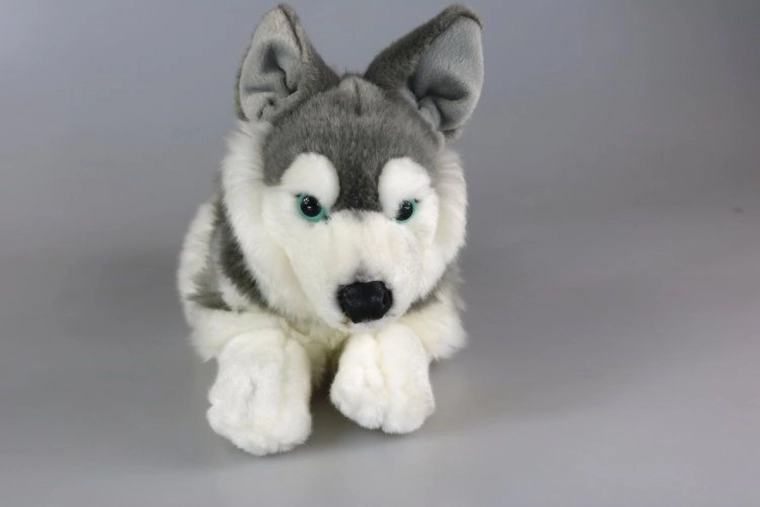 Husky en peluche tout doux 34 cm. Sûr dès 0+, apparence réaliste et matière moelleuse pour câliner. Excellent cadeau pour les enfants et les amoureux des animaux.