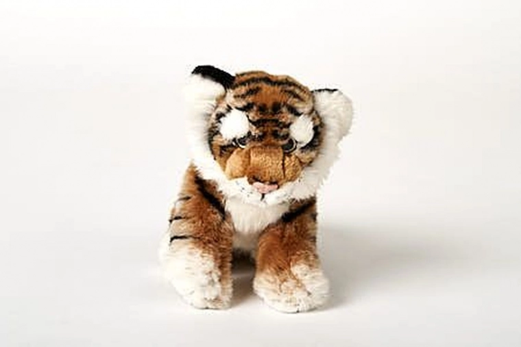 Tigre en peluche marron d’environ 25 × 19 × 11 cm (sans la queue). Longueur de la queue environ 12 cm. Âge 0+