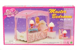 Offrez aux poupées un sommeil luxueux avec le lit à baldaquin élégant GLORIE. L’ensemble comprend un lit avec couvre-lit et coussin, deux tables de chevet et deux lampes qui s’allument en tournant le cylindre. Idéal pour les jeux créatifs et les maisons de poupées stylées.