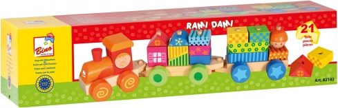 Le train en bois Bino est un jouet à tirer et un jeu de construction. Fabriqué en bois robuste, contient 18 blocs pour les enfants dès 3 ans.